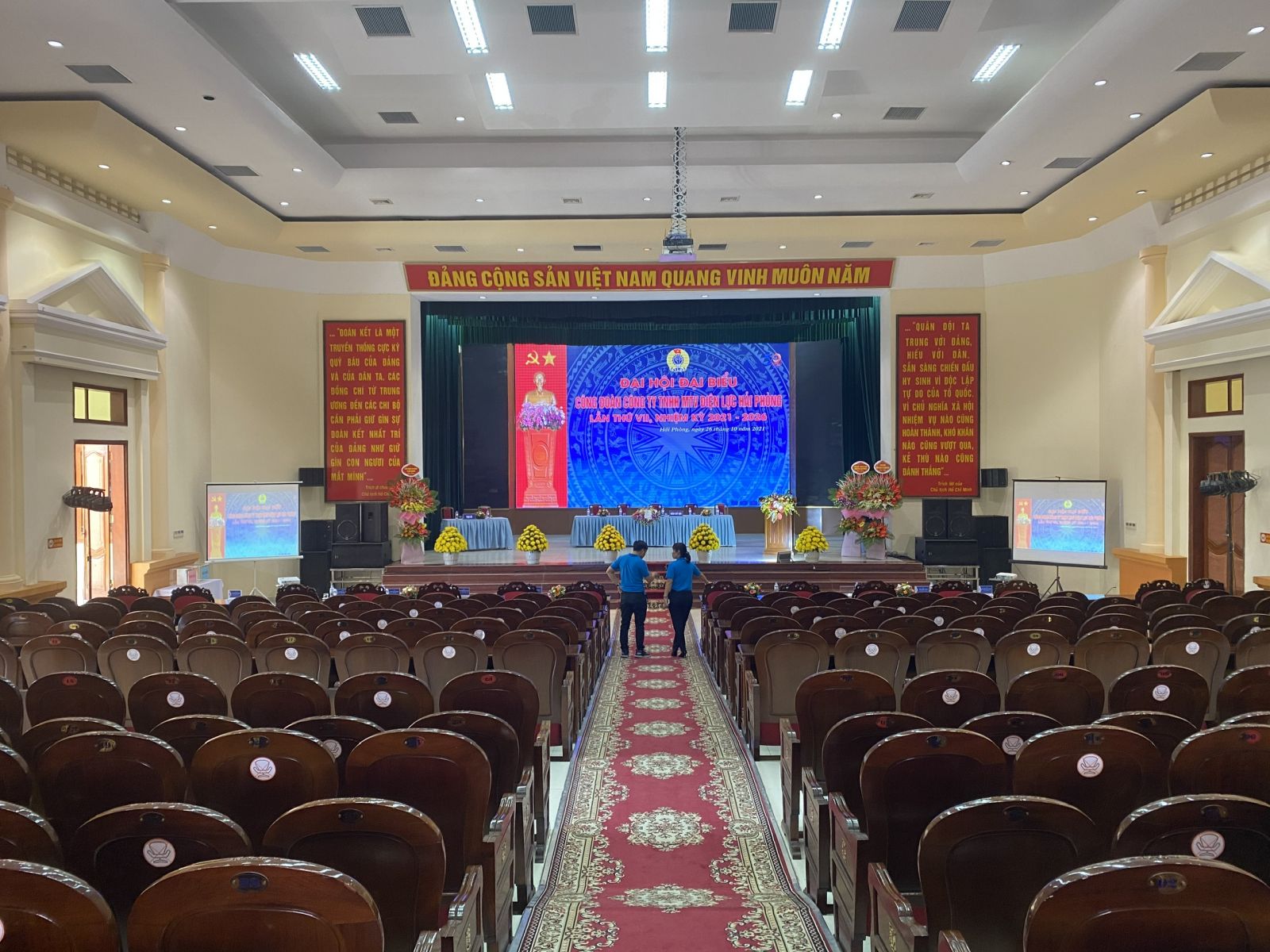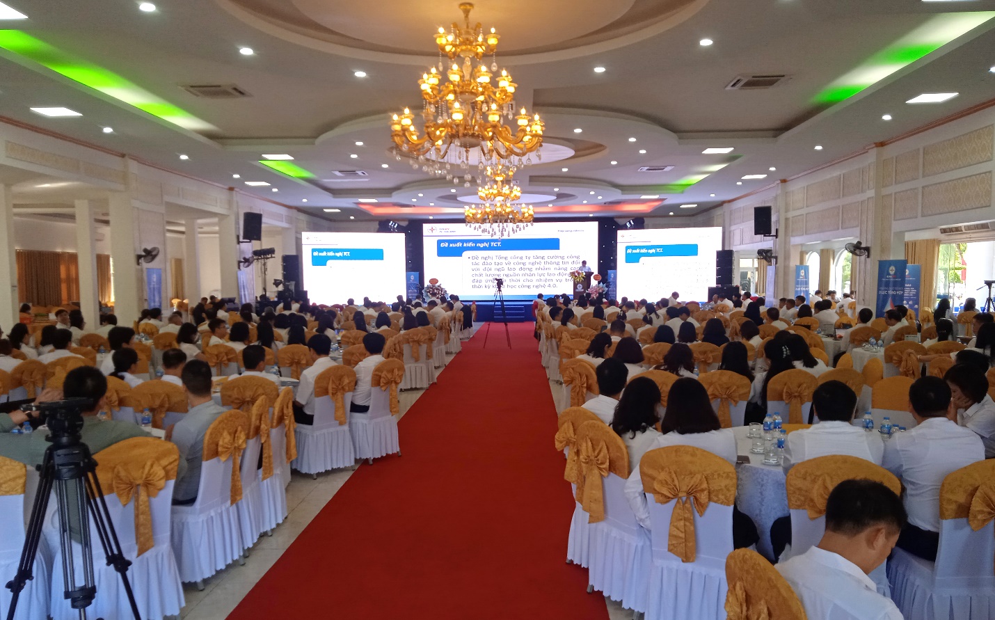 Hội trường lớn sức chứa 450 ghế, Màn hình LED 5x11m và đầy đủ các trang thiết bị hiện đại.